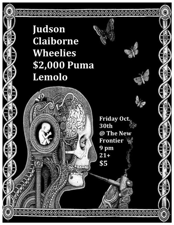 This show randomly came about, when Greg from $2000 Puma happened to come upon our myspace page and really enjoy our music. We have never met any of the guys from the other bands ($2000 Puma, The Wheelies, Judson Claiborne), so if you’re in the neighborhood come check it out and make some new friends with us.